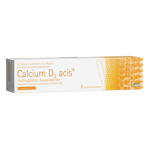 Calcium D3 acis® 1000 mg/880 I.E. Brausetabletten werden eingenommen zur Vorbeugung und Behandlung von Calcium- und Vitamin-D-Mangelzuständen bei älteren Menschen sowie als Ergänzung zur Unterstützung einer spezifischen Osteoporosetherapie für Patienten, bei denen das Risiko eines Vitamin-D- und Calciummangels besteht.