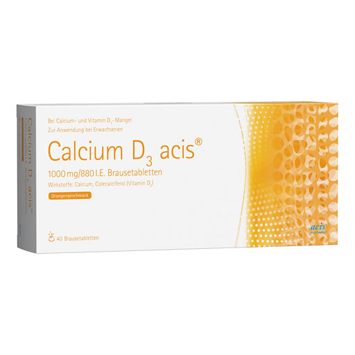 Calcium D3 acis® 1000 mg/880 I.E. Brausetabletten werden eingenommen zur Vorbeugung und Behandlung von Calcium- und Vitamin-D-Mangelzuständen bei älteren Menschen sowie als Ergänzung zur Unterstützung einer spezifischen Osteoporosetherapie für Patienten, bei denen das Risiko eines Vitamin-D- und Calciummangels besteht.