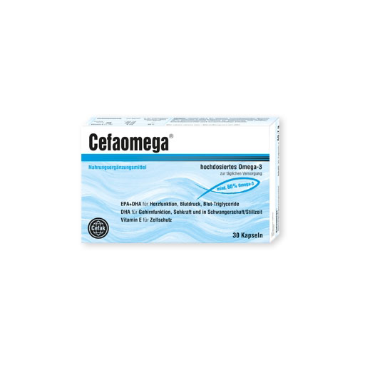 Cefaomega® enthält ein hochgereinigtes Hochseefischöl mit einer sehr großen Menge der für den Körper wichtigen Omega-3-Fettsäuren DHA und EPA sowie Vitamin E.