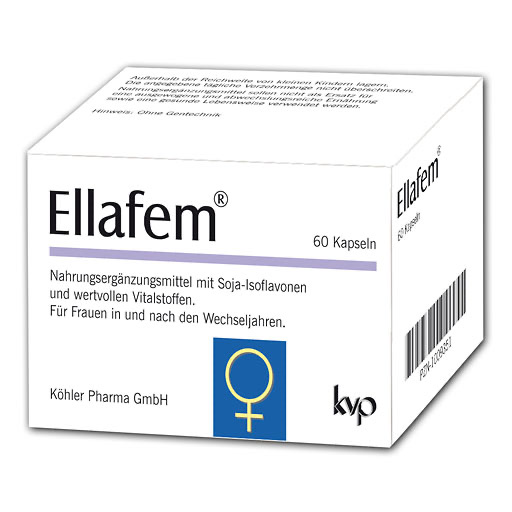 Soweit vom Arzt nicht anders verordnet, nehmen Frauen während der Wechseljahre täglich 1 Kapsel ELLAFEM® mit ausreichend Flüssigkeit zu den Mahlzeiten ein. Empfohlen wird – vor allem bei Verschlechterung der Beschwerden oder Unverträglichkeit – eine individuelle Beratung bei dem Arzt, Heilpraktiker oder Apotheker des Vertrauens.