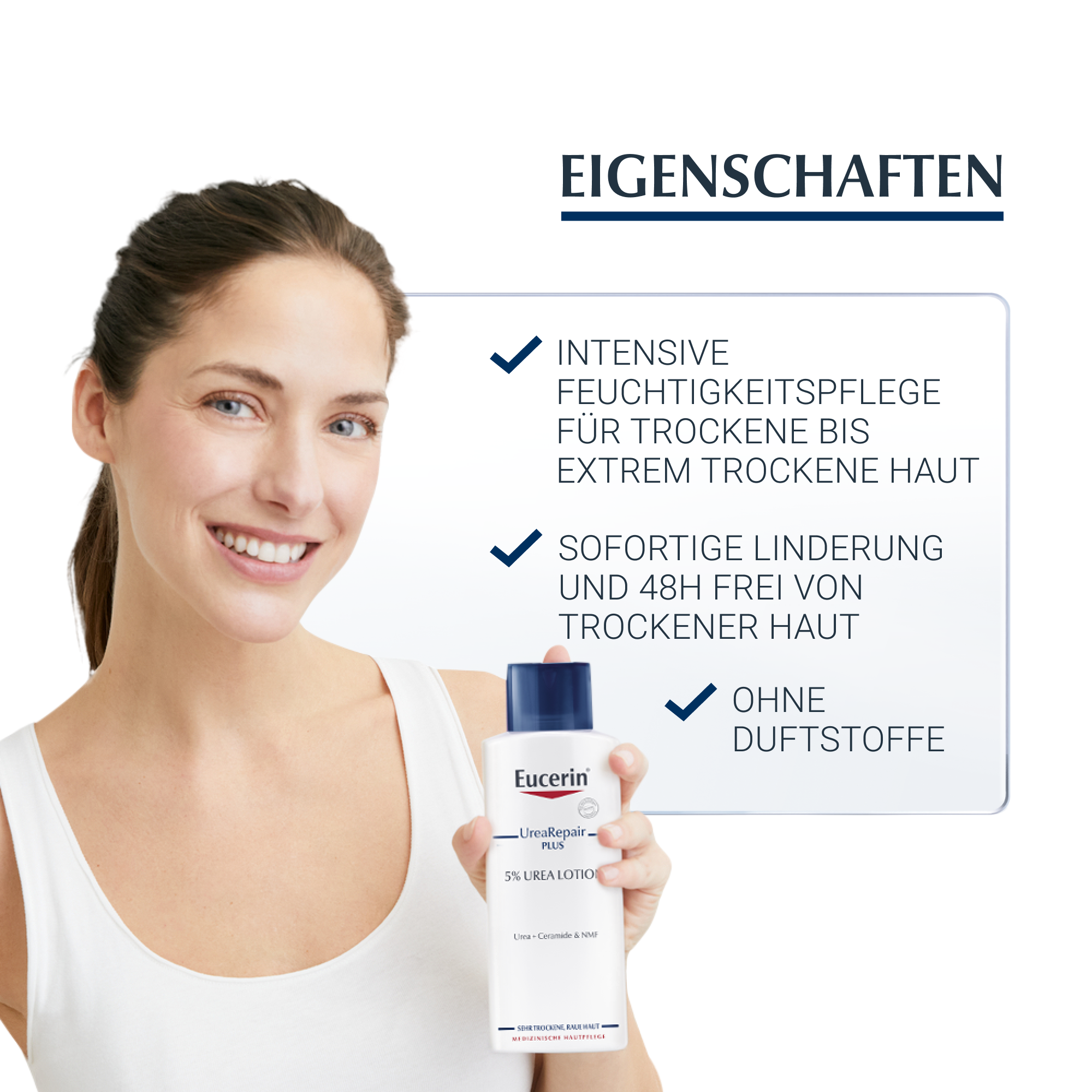 Urea gehört zu den Stoffen, die von der Haut zur Regulierung des Feuchtigkeitshaushalts gebildet werden – ein natürlicher Feuchthaltefaktor (Natural Moisturing Factor = NMF). Als hauteigener Wirkstoff wird Urea gut vertragen. Ceramide stärken die Hautbarriere, indem sie dazu beitragen, Feuchtigkeitsverluste durch Verdunstung zu verhindern und Reizstoffe abzuwehren, die Entzündungen und Juckreiz verursachen können. Die UreaRepair-Reihe bildet die natürliche Zusammensetzung der natürlichen Feuchtigkeitsspender gesunder Haut nach und gibt trockener Haut die Stoffe, die sie für eine optimale Feuchtigkeitsversorgung benötigt.