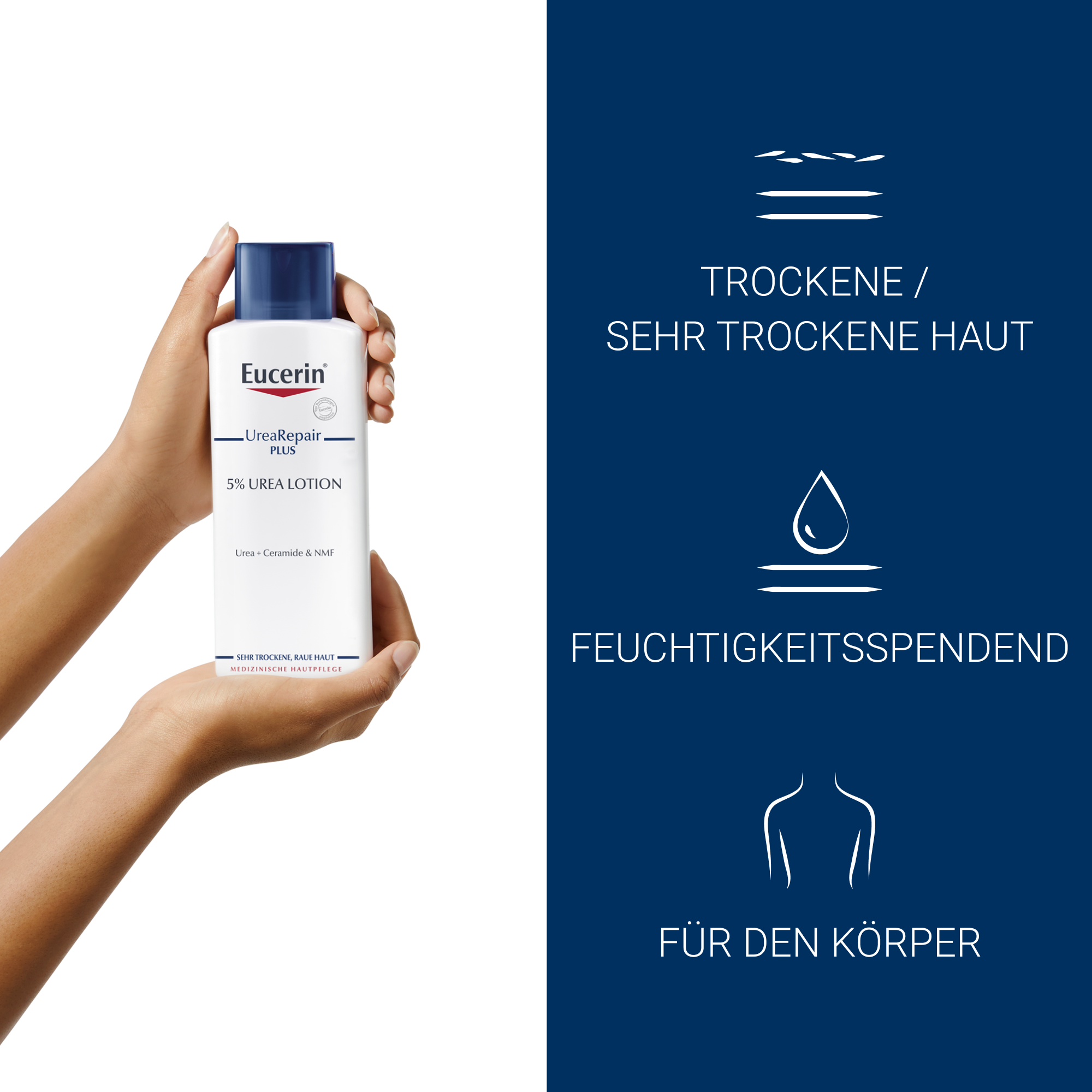 Die Eucerin UreaRepair 5% Urea Feuchtigkeitslotion pflegt als Körperlotion hochwirksam sehr trockene Haut. Die Pflegecreme spendet 48 Stunden langanhaltend Feuchtigkeit und lindert sofortig die Zeichen von sehr trockener Haut: Rauheit, Juckreiz und Spannungsgefühl.