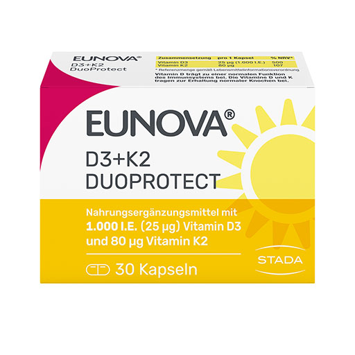 EUNOVA® Langzeit enthält alle Vitamine, wichtige Mineralstoffe und Carotinoide. Durch die einzigartige Langzeit-Technologie werden die wasserlöslichen Vitamine über mehrere Stunden nach und nach freigesetzt. Lediglich bei Vitamin B12 und Folsäure wurde bewusst auf eine zeitverzögerte Freisetzung verzichtet, um eine optimale Aufnahme zu gewährleisten.