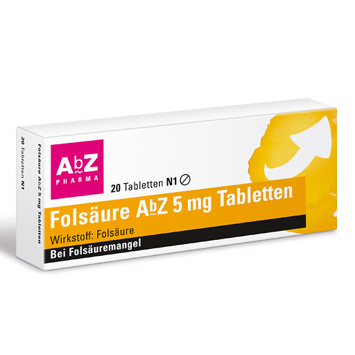 Anwendungsgebiete: Folsäure AbZ wird angewendet zur Behandlung von Folsäuremangelzuständen, die diätetisch nicht behoben werden können.