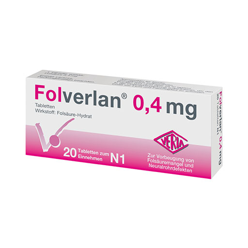 Folverlan® 0,4 mg wird angewendet zur Vorbeugung von Neuralrohrdefekten, insbesondere der Spina bifida („offener Rücken“) und zur Vorbeugung und Behandlung von Folsäuremangelzuständen, die diätetisch nicht behoben werden können.
