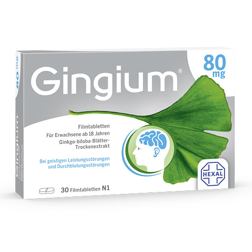 Damit das Gehirn seinen vielfältigen Aufgaben gut nachkommen kann, braucht es ausreichend Nährstoffe und Sauerstoff. Gingium® 80 mg hilft dabei, indem es die Durchblutung im Gehirn fördert und dadurch Gedächtnis und Konzentration verbessert.*** Zudem kann Gingium® 80 mg durch die bessere Durchblutung auch die Regeneration des Innenohrs bei Tinnitus**** unterstützen. Der hochwertige Spezialextrakt wird aus den Blättern des Ginkgo-Baumes gewonnen, weist eine hohe Konzentration natürlicher Wirkstoffe (Flavonglykoside, Terpenlactone) auf und ist gut verträglich.