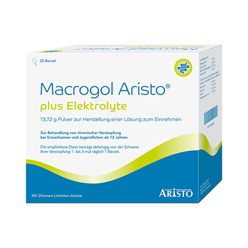 Macrogol Aristo® plus Elektrolyte ist ein Abführmittel zur Behandlung von chronischer Verstopfung bei Erwachsenen und Jugendlichen. Es wird nicht empfohlen bei Kindern unter 12 Jahren. Macrogol Aristo® plus Elektrolyte verhilft Ihnen zu einem leichteren Stuhlgang, auch wenn Sie für eine längere Zeit unter Verstopfung litten.
