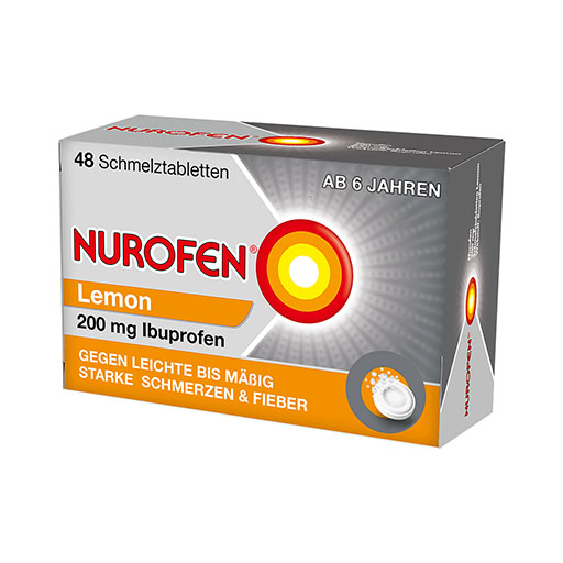 NUROFEN® 200 mg Schmelztabletten Lemon auf der Zunge zergehen lassen und die aufgelöste Masse herunterschlucken. Eine zusätzliche Flüssigkeitsaufnahme ist nicht notwendig. Bei Patienten mit einem empfindlichen Magen empfiehlt sich die Einnahme während der Mahlzeiten.