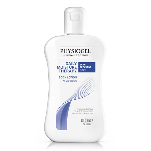 Die Physiogel Daily Moisture Therapy Bodylotion (Lipidgehalt 7 %) eignet sich speziell für sehr trockene Haut. Sie vermindert unangenehme Spannungsgefühle und versorgt die Haut dank ihres 24-Stunden-Depot-Effekts langanhaltend mit Feuchtigkeit. Die PHYSIOGEL Daily Moisture Therapy Body Lotion für sehr trockene Haut pflegt mit dem 3-fach Effekt: feuchtigkeitsspendend, regeneriert und repariert.