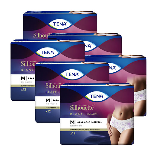 Um sich in jeder Situation sicher und wohlzufühlen, ist es wichtig auf ein Produkt vertrauen zu können, das bei Inkontinenz rundum diskreten und sicheren Schutz leistet. TENA® Silhouette Normal Blanc Einweghosen bieten zuverlässigen Auslaufschutz und sehen dabei aus wie normale weiße Unterwäsche. Das sehr saugfähige und atmungsaktive Material bietet eine besonders schnelle Absorption und schließt auslaufenden Urin sicher ein, unerwünschter Geruchsbildung wird dank Fresh Odour Control wirksam vorgebeugt. Die Pants eignen sich für Frauen mit mittlerer bis stärkerer Blasenschwäche.