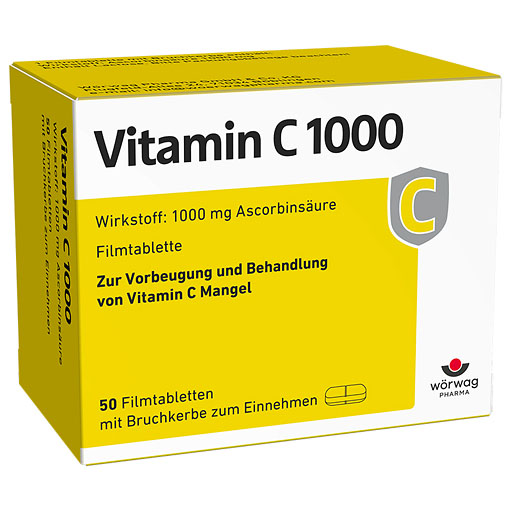 Das Kraftpaket: hochdosiert mit 1000 mg Vitamin C. Mit einer effektiven Hochdosis von 1000 mg Vitamin C haben sich die Vitamin C 1000 Filmtabletten von Wörwag Pharma sowohl zur Prophylaxe wie in der Behandlung von Vitamin-C-Mangel-Erkrankungen bewährt.